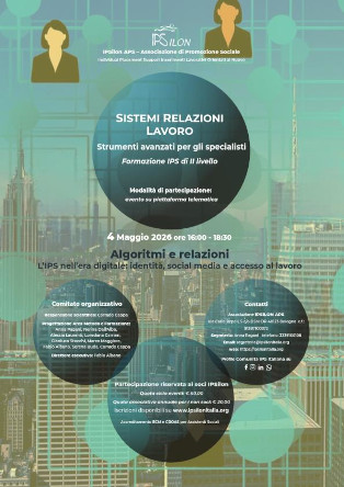 Di seguito il programma, con il dettaglio dei contenuti e degli interventi, relativo alla prima giornata, quella del 4 maggio 2026, delle tre di webinar dedicate alla formazione IPS di secondo livello curata dall’Associazione IPSILON APS su “Sistemi, relazioni e lavoro – Strumenti avanzati per gli specialisti”.